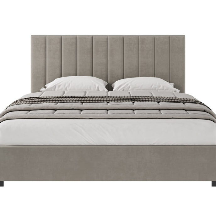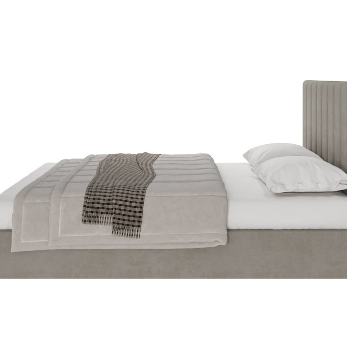The vertical lines create a visual effect of increased height, while the choice of fabric gives the soft headboard a pleasant tactile feel. The high headboard and frame add extra flair to the Amelia bed.