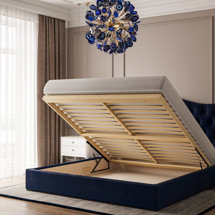 The GOLD bed is sure to become the centrepiece of your bedroom, combining individuality, comfort, convenience, and practicality. ✨ Its headboard is adorned with an exquisite tufted design, giving it a regal and luxurious appearance. 💫