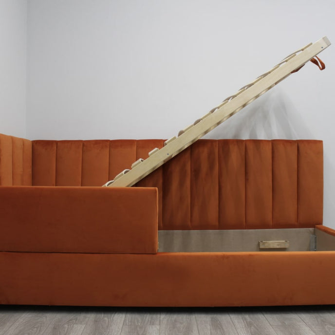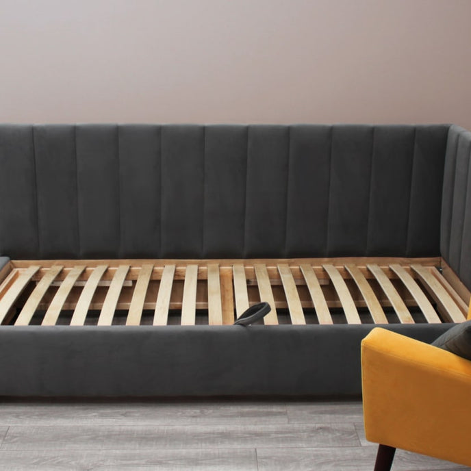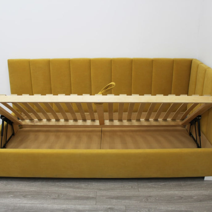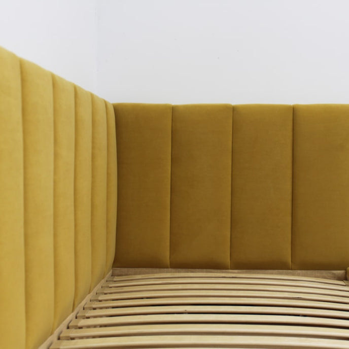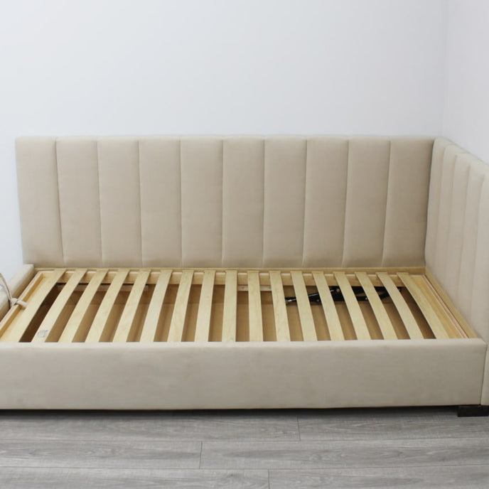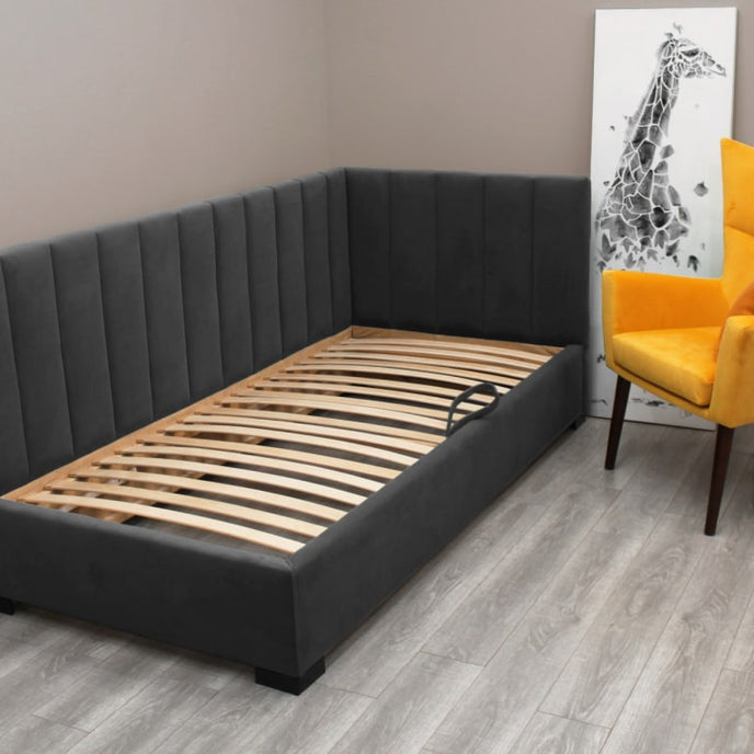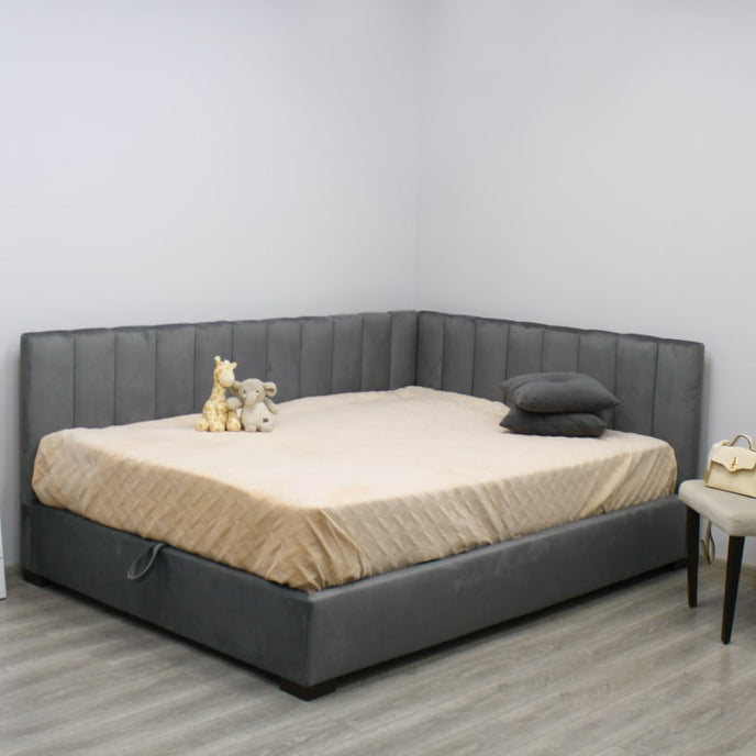 The Mia Corner Bed is not just a bed—it’s a versatile and modern solution for any bedroom. Choose from a variety of sizes, fabrics, and features to create a bed that fits your lifestyle and aesthetic.