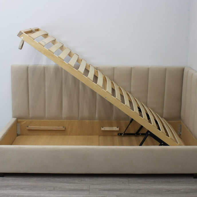 Storage Solution: Comes with an optional lift-up mechanism and a spacious storage compartment for bedding, clothes, and other essentials.