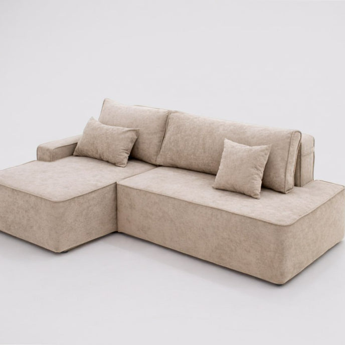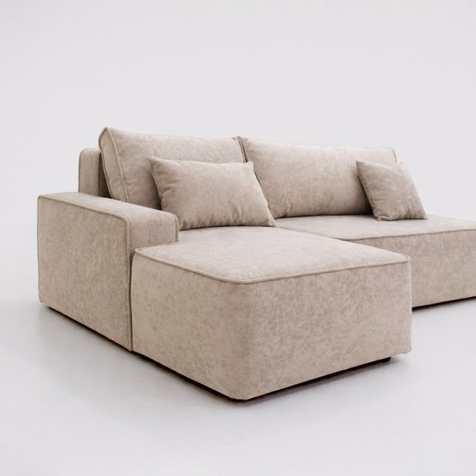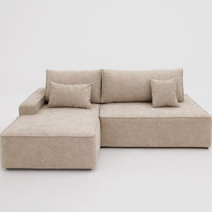 The wide chaise section allows you to stretch out fully, whether you’re enjoying a movie night or simply unwinding after a long day. The balanced proportions make it perfect for contemporary interiors — spacious yet visually light.