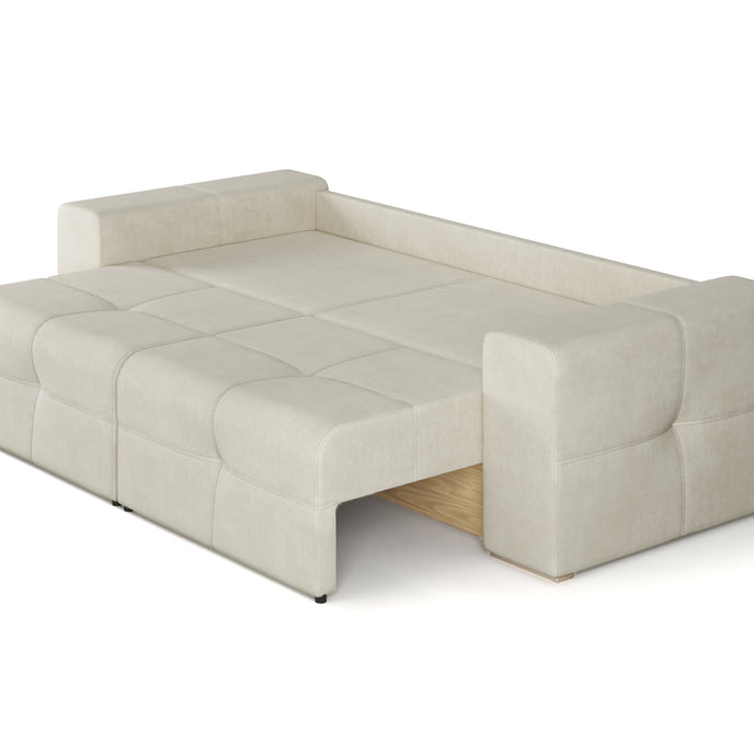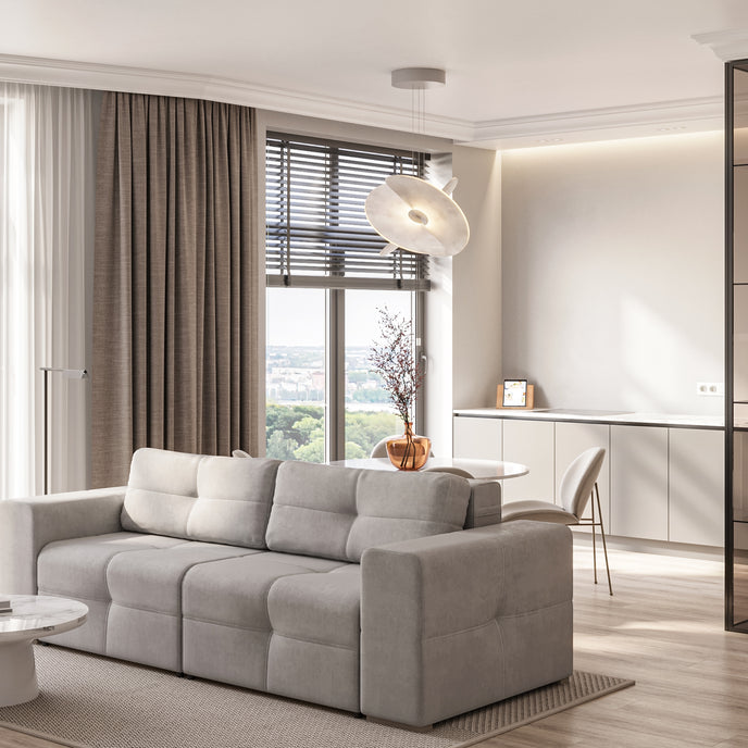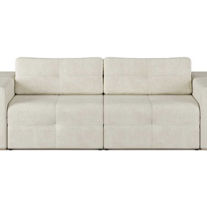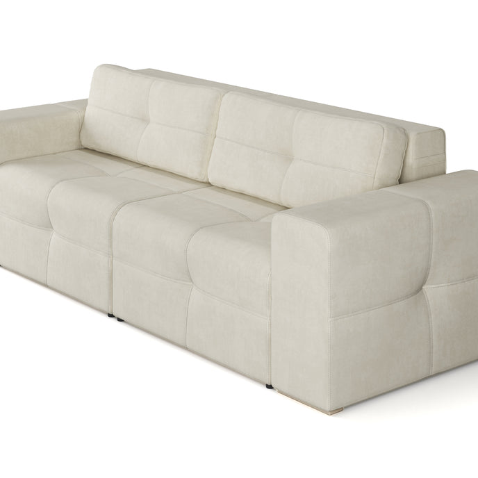 The “Caprice” sofa is a perfect blend of elegance and functionality, designed to complement modern and minimalist interiors. Upholstered in a soft, light-colored fabric, it adds a sense of brightness and airiness to any space. Its clean lines and tufted cushions provide a sophisticated yet inviting look, ideal for both relaxing and entertaining.