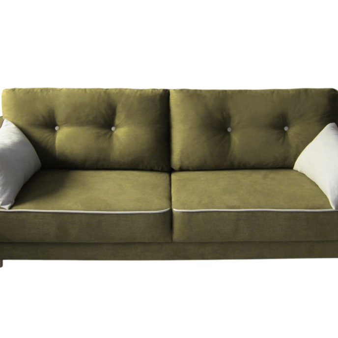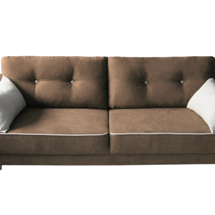Cushions: Two large buttoned cushions (100 cm x 50 cm x 20 cm) and two decorative cushions (40 cm x 40 cm) — adding coziness and style.